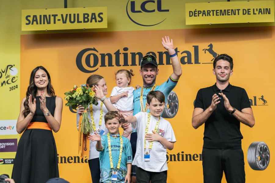 E chissà come avrà vissuto questo traguardo la ‘coppia molto speciale’ che segue Mark a ogni partenza di questo Tour con un grande striscione e un camper. Mark a Firenze li aveva abbracciati affettuosamente. Stretti stretti. Rispetto, affetto, amore. Per la sua famiglia, per i suoi compagni, per i suoi avversari, talvolta anche amici e per i suoi tifosi. La moglie modella Peta Todd ad attenderlo e i quattro figli, sul palco con lui.