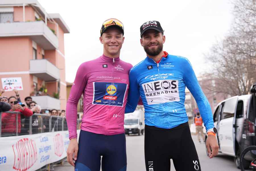 Alla partenza da Camaiore, il colore azzurro della maglia di leader della classifica di Filippo Ganna ci travolge e ci emoziona proprio come il suo sorriso incorniciato da quella barba che qualcuno ha definito ‘poco aereodinamica’. Smentita questa definizione, con il capolavoro della vittoria nella crono individuale a Lido di Camaiore, Top Ganna precisa che a quella barba ci tiene eccome: “E’ il mio stile e giù dalla bici c’è una vita!”. Del resto la conferma di ciò arriva anche alla fine della tappa odierna in cui un Ganna ‘barbuto’ mantiene la maglia di leader della classifica e festeggia con l’amico di sempre Jonathan Milan, maglia ciclamino e vincitore sul traguardo di Follonica grazie anche a un treno della Lidl-Trek fatto di vagoni coloratissimi, in perfetto orario e sintonia.