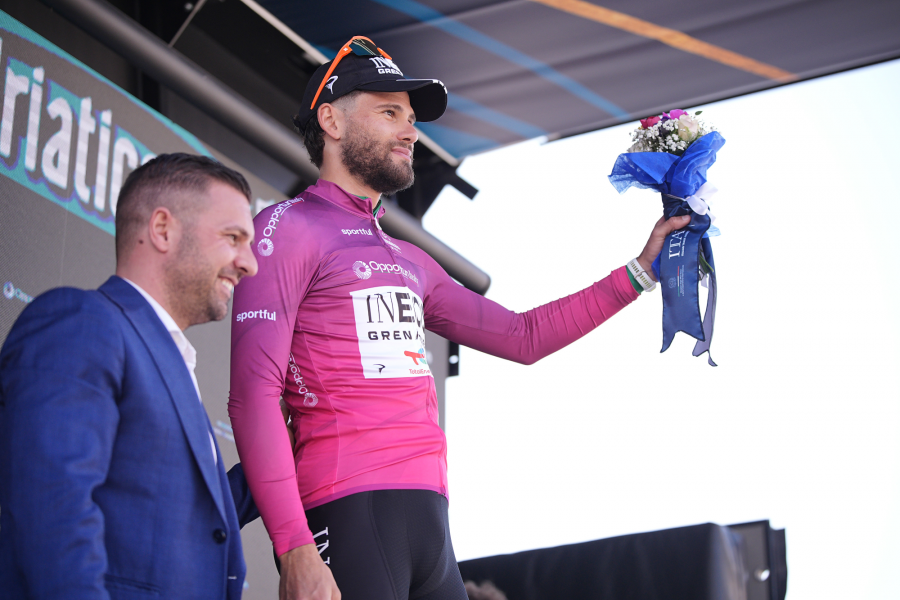 - Maglia Ciclamino, leader della Classifica a Punti, in collaborazione con ITA - Italian Trade Agency - Filippo Ganna (Ineos Grenadiers) - indossata da Thymen Arensman (Ineos Grenadiers)