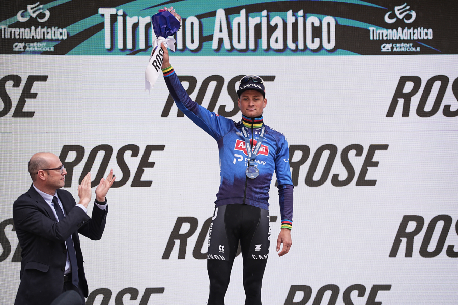 La seconda tappa della Tirreno Adriatico Crédit Agricole si è conclusa con un appassionante sprint a tre sullo strappo di San Gimignano che ha visto prevalere, a cinque anni dall’ultima volta alla Corsa dei Due Mari, Mathieu Van der Poel. L’otto volte campione del mondo di ciclocross si è imposto su Isaac Del Toro e Giulio Pellizzari. Il terzetto aveva preso il largo fin dal primo chilometro del tratto sterrato che precedeva lo strappo finale sul lastricato di San Gimignano. Del Toro, con un colpo di reni, riusciva ad avere la meglio su Pellizzari conquistando il secondo posto e, grazie agli abbuoni, la Maglia Azzurra di leader della classifica generale. Niente da fare invece per l’ex leader della generale Filippo Ganna, rimasto attardato sullo sterrato e giunto al traguardo a 1’04’’. In classifica Del Toro e Pellizzari sono separati da 3”, con Magnus Sheffield a 13”.