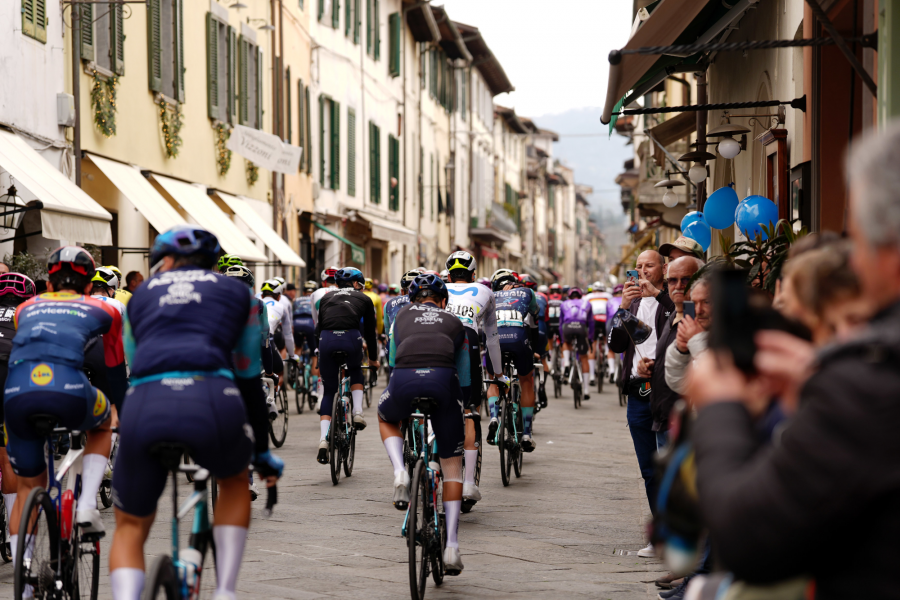 Il volto ricoperto del fango degli sterri degli ultimi 5,3 km preludio all’ascesa nel centro storico di San Gimignano (SI) sino al traguardo; la pioggia che all’improvviso (anche se prevista) si mette a battere sui manubri come un martello e il gruppo che rincorre quelli che li davanti se la stanno giocando, ma anche godendo come poi dichiarerà con il viso sorridente, Mathieu van del Poel (Alpecin Premier-Tech), vincitore della prima tappa in linea di questa Corsa dei due Mari, Uno che qui ha fatto tesoro della sua esperienza di ciclocrossista e della sua grande capacità di guidare la bici. Una frazione bellissima, che attraversa strade antiche e moderne al contempo, in una Toscana che da Camaiore ci porta all’entroterra costellato di borghi e macchie di verde ove il biancospino la fa da padrone e la strada porta con sé gioia e colore.